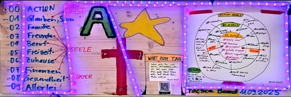 Es geht darum, dass du Spass an etwas Kreativem hast, dich austauschen kannst und am Schluss ein Kunstwerk in der Hand hältst … und mit nach Hause nehmen kannst (bei mir schmückt das Activity-Board das Wohnzimmer).